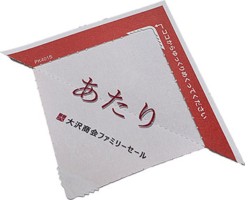30日(日)にご来場いただいた方全員に、500円クーポン券が当たる三角くじにチャレンジいただけます。 ご入場の際に、くじを1枚おひきください。”あたり”がでたら、その日に使える500円クーポン券をお渡しいたします! ![]() ![]() ★500円クーポン券について 【 クーポン券の付与条件・ご注意点 】 ・18歳以上とさせていただきます。 【クーポン券のお渡し方 】 ・5階特設カウンターで当たりくじと引き換えに、クーポン券をお渡しいたします。 【クーポン券のご利用にあたって 】 ・500円クーポン券1枚につき、1回のレジでのお買い物合計金額が3,000円(税込)以上でご利用いただけます。 ・現金への引き換えはいたしかねます。 ・発行印が押されてないものは無効となります。 ・有効期限(11/30(日)15時)を過ぎますと無効になります。 ・11/30(日)「大沢商会ファミリーセール」会場(東京都立産業貿易センター浜松町館)でのみご利用いただけます。 ・盗難や紛失などに関して、その責任を負いません。 ・紛失された場合は再発行できませんので予めご了承ください。 ・釣銭はお出しできません。